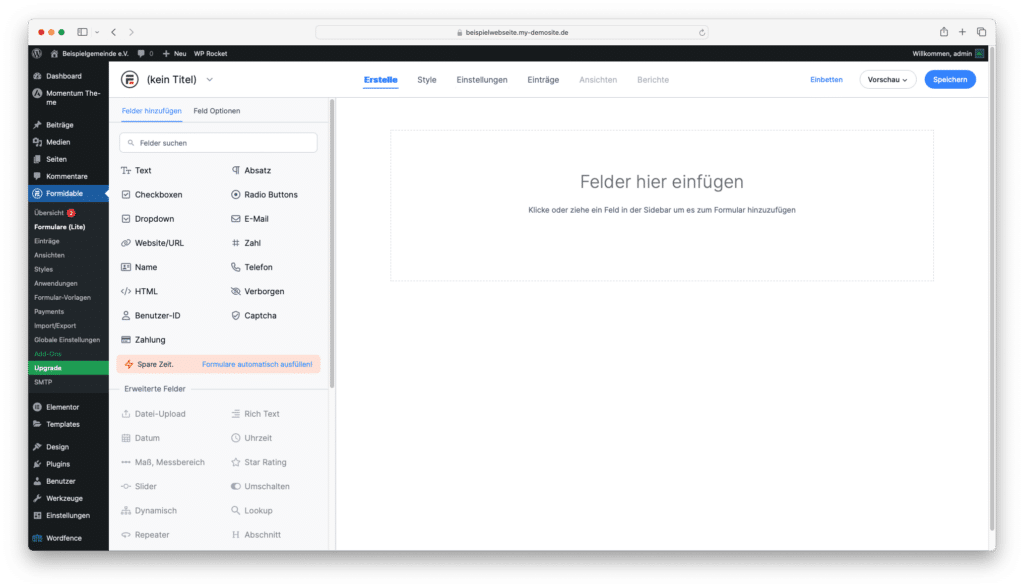 - Vielseitige Feldtypen: Ob Textfelder, Radiobuttons, Checkboxes, Datei-Uploads oder Kalender – Formidable bietet eine breite Palette von Feldtypen für jede Anforderung.