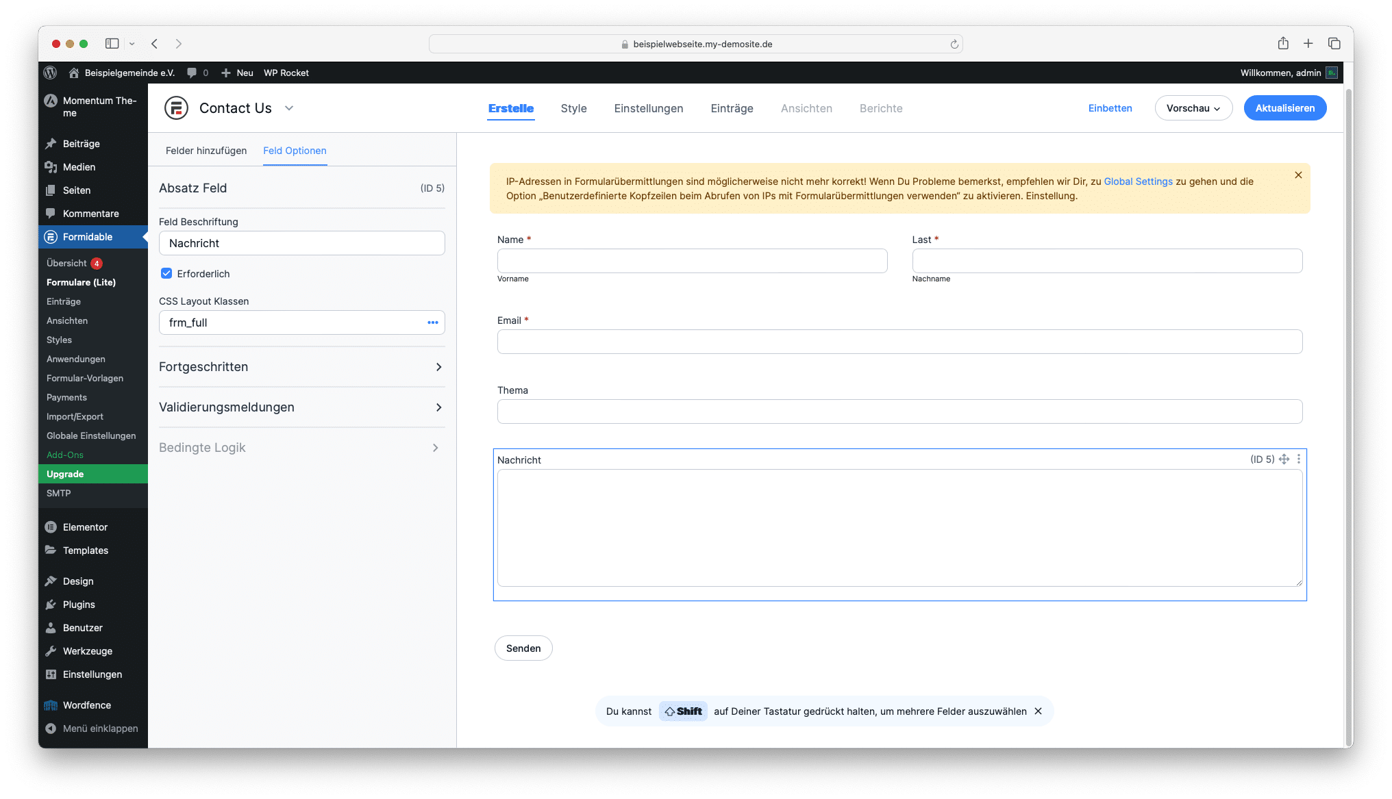 Formidable ist mehr als nur ein einfacher Formular-Builder. Es ist eine umfassende Lösung, die es dir ermöglicht, benutzerdefinierte Formulare zu erstellen, die genau auf deine Bedürfnisse zugeschnitten sind. Ob einfache Kontaktformulare, Umfragen, Buchungsformulare oder komplexe Anwendungen mit bedingter Logik. Formidable bietet dir die Flexibilität und die Werkzeuge, um all das und noch mehr zu bewerkstelligen.